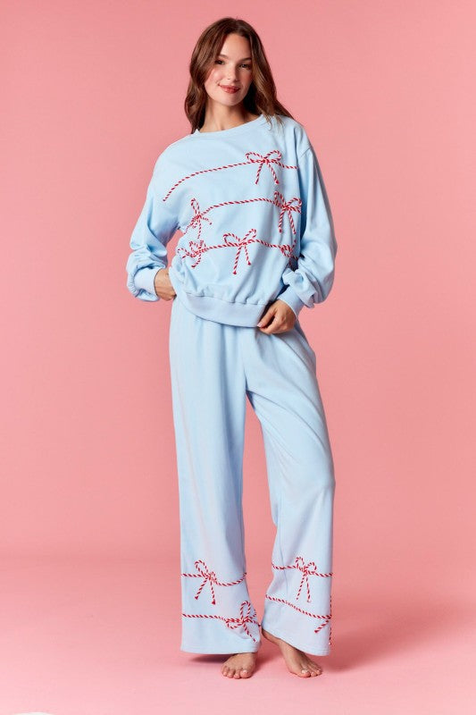 THE SOFTEST MATERIAL ... the most gorgeous baby powder blue or the set can be purchased in ivory with red/white twist cord detail ... perfect for holiday lounging or running errands